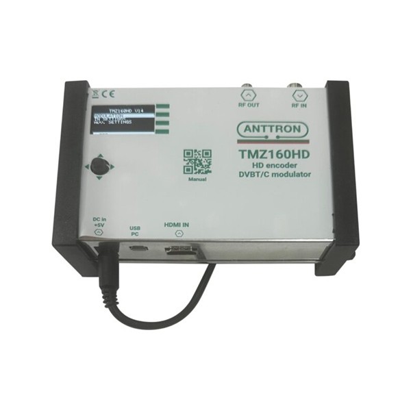 Ο Anttron TMz160HD είναι ένας ψηφιακός διαμορφωτής HDMI σε DVB-T/C, ιδανικός για οικιακές και επαγγελματικές εφαρμογές. Επιτρέπει τη μετατροπή οποιουδήποτε HDMI σήματος (π.χ. αποκωδικοποιητή, Blu-ray, media player ή κάμερας) σε επίγειο ψηφιακό κανάλι, ώστε να προβάλλεται σε οποιαδήποτε τηλεόραση του δικτύου μέσω της λίστας καναλιών DVB-T/C.