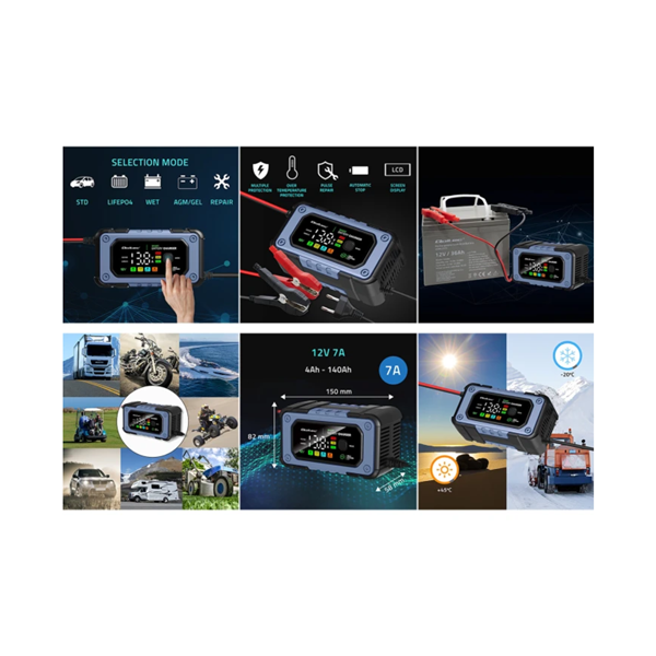 Ο φορτιστής–συντηρητής μπαταριών μολύβδου 12V DC 7A 52486 QTC είναι ένας έξυπνος και εξελιγμένος φορτιστής, ελεγχόμενος από μικροεπεξεργαστή, κατάλληλος για μπαταρίες 12V με λειτουργίες συντήρησης και ανάκτησης.