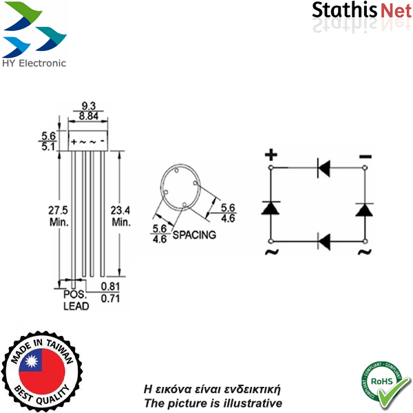 Γέφυρα ανόρθωσης 1.5A 100V στρογγυλή W01MG HY Electronic