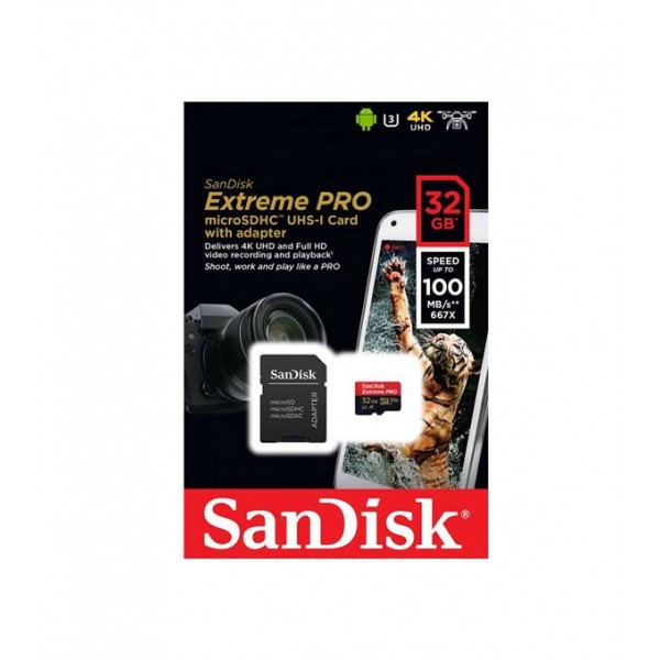 Κάρτα μνήμης 32GB Extreme PRO microSDHC 100MB/s V30 U3 A1 με αντάπτορα SDSQXCG-032G-GN6MA SanDisk