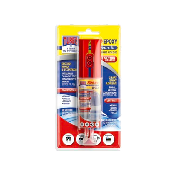 Η Turbo Epoxy 88505 (24ml) είναι μια υψηλής ποιότητας εποξική κόλλα δύο συστατικών (σύριγγα), σχεδιασμένη για απαιτητικές εργασίες συγκόλλησης, στοκαρίσματος, γεμίσματος και στεγανοποίησης.