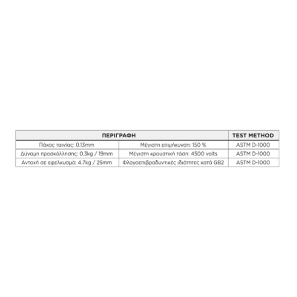 • Μονωτική ταινία κατασκευασμένη από PVC και ισχυρή κόλλα με βάση το καουτσούκ.