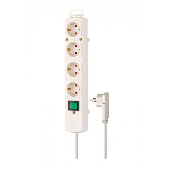 Πολύπριζο 4 σούκο 3x1.5mm² 2m λευκό με διακόπτη + προστασία 1153120100 Brennenstuhl