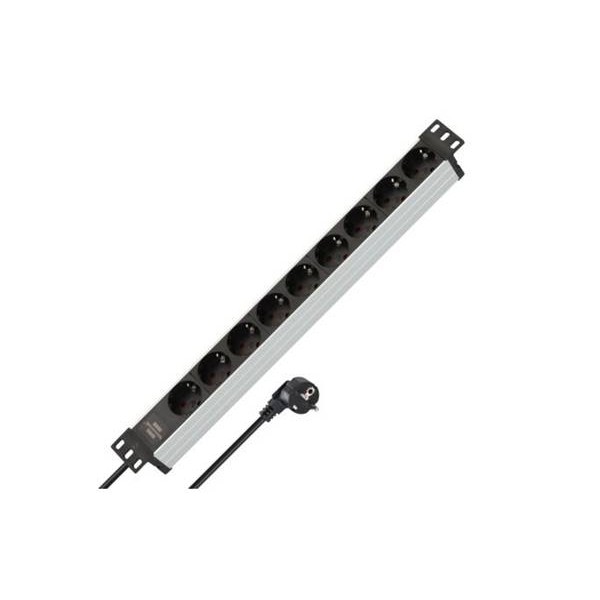 Πολύπριζο 9 σούκο 3x1.5mm 2m ασημί/μαύρο rackmount με προστασία 1390007009 Brennenstuhl