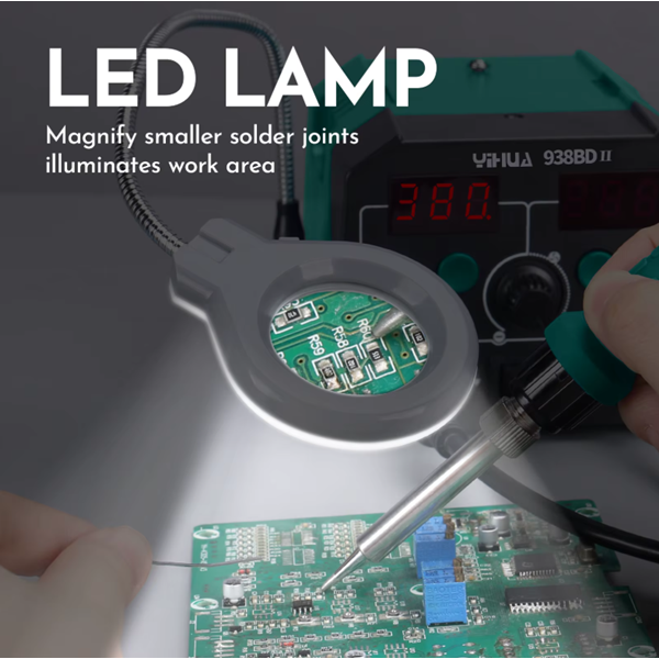 Σταθμός κόλλησης και θερμού αέρα με κολλητήρι, φωτιστικό & μεγεθυντικό φακό αντιστατικός YH-938BD-II YiHua