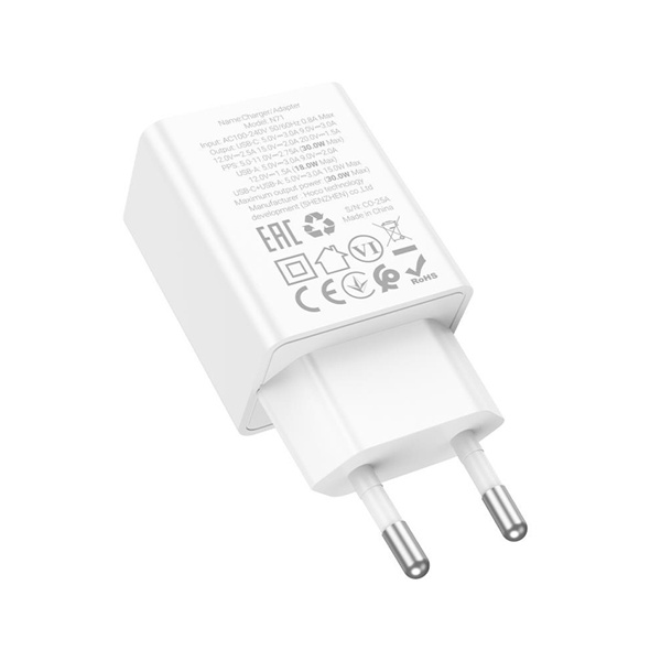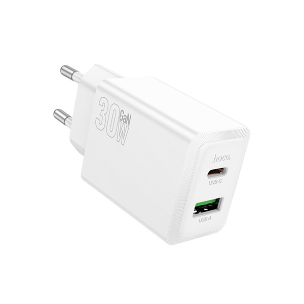 Τροφοδοτικό 230V in -> 1 x USB A + 1 x USB C Out 5V 3A PD30W + QC3.0 λευκό N71 Hoco